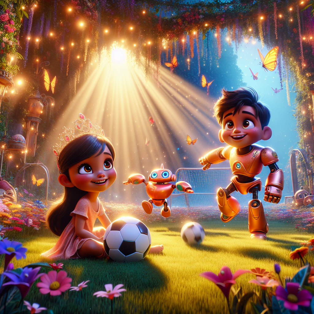 أجاب زوغّي: "أنا زوغّي، روبوت صديق! يمكنني أن أتحول إلى أي شيء! هل تريدون أن نلعب معًا؟" ابتسم أندريس، وقال: "هذا رائع! هيا نلعب!" وهكذا، تحول زوغّي إلى كرة قدم كبيرة، وبدأوا اللعب.