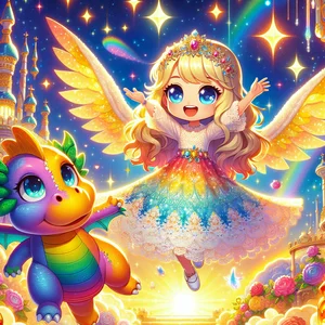 Once upon a time, in a sparkly space station that zoomed around the twinkling stars, lived a princess named Aurora. Aurora loved everything sparkly and dreamy. She spent her days dreaming of magical adventures and princess gowns, sparkling with jewels. One sunny space-day, a shimmering invitation arrived. It wasn't just any invitation; it was covered in blue-violet glitter that smelled like freshly baked cookies! The invitation was from Frizzle, a friendly Rainbow Dragon, known for their dazzling, colorful scales. Frizzle, who breathed glitter instead of fire and could fly backwards and upside down, invited Aurora to a tea party on a mountaintop in space! Aurora's heart fluttered with excitement, but also a little bit of… well, space-fright. "Space is big and dark," she thought. "Maybe even a little bit… scary." But the invitation smelled so delicious and the glitter sparkled so brightly.