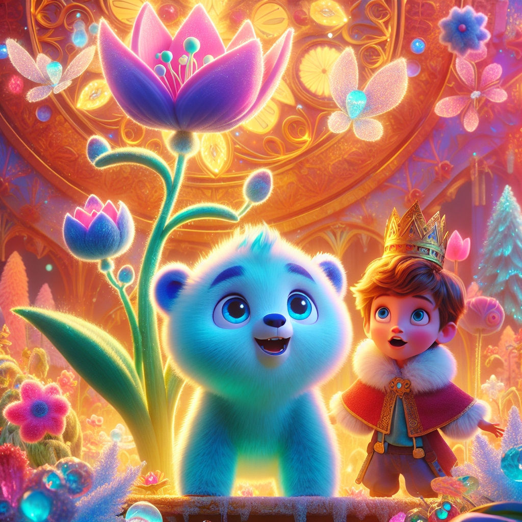 They followed the trails, and soon they were face to face with the issue, the jewel that makes the perfect snowflakes had been moved, and was now interfering with the machine. "It must be fixed, for the Gala!" said Louis. Together, Pola, Clover, and Louis worked to set things right. Clover carefully moved the plant to allow for the jewel to fit in place. Pola used their special snowflake-shaping powers to guide the jewel, and bring the correct crystal in line. Louis, with his love of mysteries, helped by remembering past stories of kings and queens, helped find clues. Finally, with a click and a whir, the machine began to work. The first snowflakes, instead of falling apart, started to sparkle, as the crystal in line.