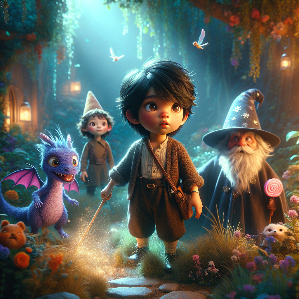 Once upon a time, nestled between sparkling shores and cotton candy clouds, lay Hidden Island. Every year, the island hosted the Candy Games, a spectacular event filled with sugary delights and friendly competition. This year, a young boy named Vihaan , who loved animals, building, magic, and trains, found an ancient map tucked away in his grandfather's attic. It promised untold wonders, and his heart thumped with excitement. The map depicted a winding path leading to Hidden Island, with instructions written in swirling, sugary ink.