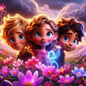 In the Faraway Kingdom, where the sky was always a cheerful blue and the flowers bloomed in every color imaginable, lived Princess Luma. Her hair swirled like a deep pink cotton candy, and her heart was as big as the kingdom itself. Princess Luma had a special garden, filled with wish-flowers. Each flower bloomed when a wish was made, their petals shimmering with all the colors of hope. But one morning, something was terribly wrong. A giant, gloomy cloud had settled over the kingdom. It was a strange cloud, a murky gray that seemed to suck all the color out of everything. The wish-flowers began to droop, and the butterflies, usually so cheerful, fluttered around in confusion.