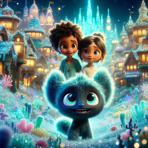 Our hero, Pola, a cuddly Polar Puff with dark turquoise fur and bright blue ears, was bubbling with anticipation. Pola loved everything about the games. They imagined the thrill of the Seahorse Races and the challenge of the Coral Climbing competition. Pola especially enjoyed the Bubble Ball game. Pola had a special talent for creating snowflakes in unique shapes and was excited to use them to make the game even more sparkly. And before the games even started, Pola was snuggling up with friends, giving warm hugs.