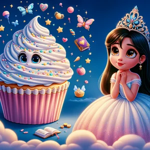 Once upon a time, in a land where magic and science danced together in the sunny sky, there was a most unusual invention—a floating science cupcake! It was a deliciously enormous cupcake, softly floating among the fluffy clouds like a gentle balloon. This cupcake had whipped cream clouds for frosting and sparkly, rainbow sprinkles that shone like tiny stars.