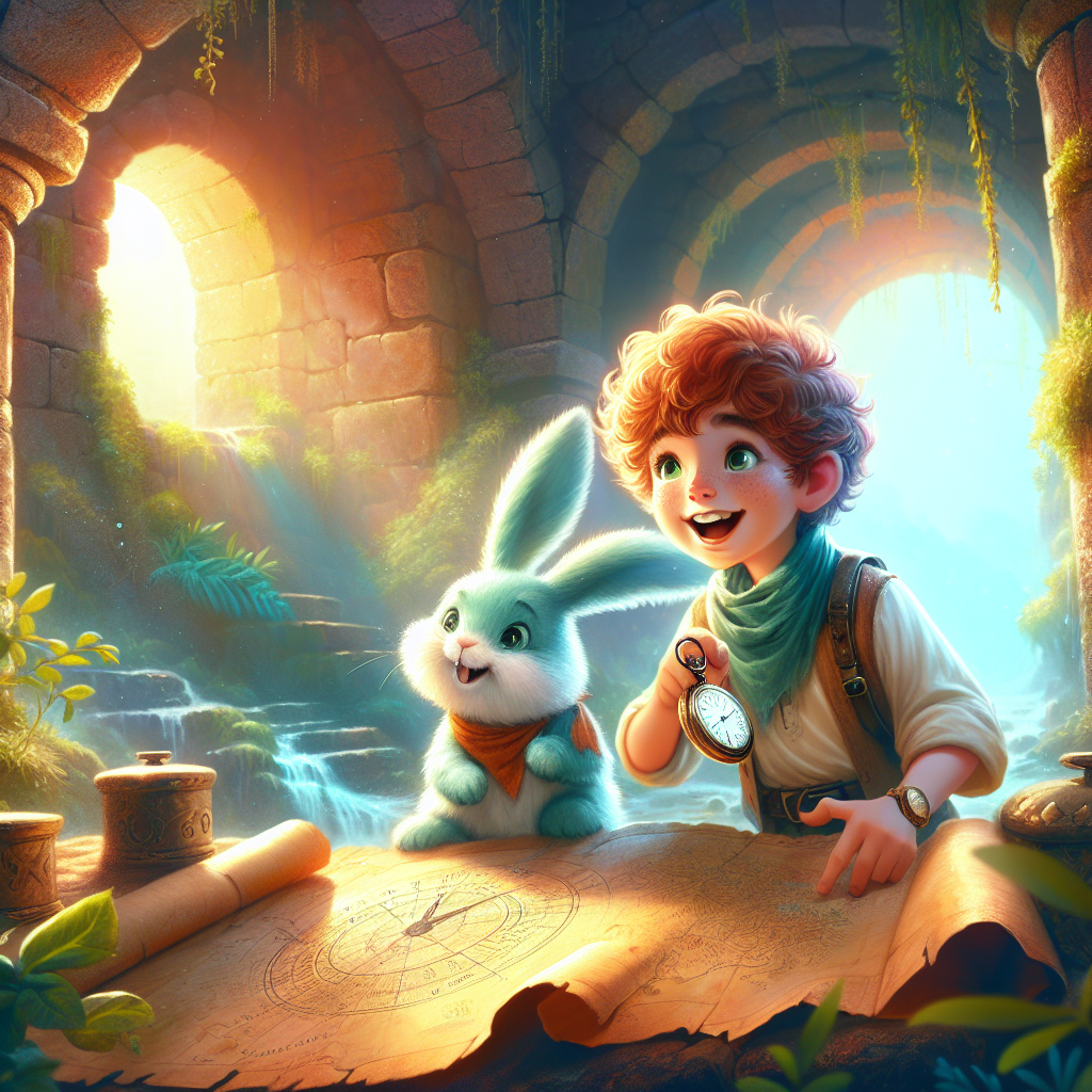 And so, their journey began. Tockie, with his pocket watch ticking, led the way, and Duke followed, clutching the map and imagining all the historic facts they would discover. Their first destination: the ancient ruins near the Duke's house.