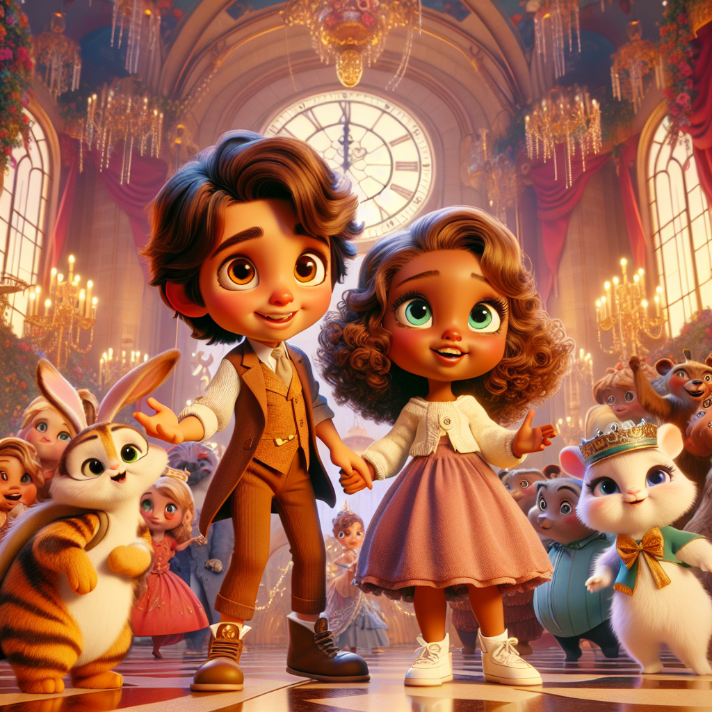 They raced back to the clock, and with teamwork and skill, they placed the spring back in its place. The clock ticked again! Tick-tock, tick-tock… perfectly in time! The music and dance began anew. The gala resumed, even more spectacular than before! The dancers whirled, the singers sang, and everyone had a wonderful time.