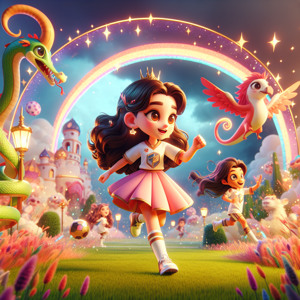 But there was a problem. Her parents, the King and Queen, weren't convinced. "Football is for knights and heroes, darling," her mother had said gently. "A princess should be… well, a princess." Outside, a magical thunderstorm was brewing, the sky crackling with electric energy. Madison felt a tiny shiver of fear, but the call of the gridiron was stronger.