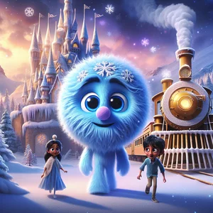 One sunny afternoon, as the scent of freshly baked gingerbread filled the air, something peculiar happened. Snowflakes, big and fluffy, began to fall, even though it was the middle of summer! The trains, which usually zoomed across the land, carrying giggling children and happy animals, began to slow down and sputter. "Oh dear," Glim exclaimed, his snowflake beard quivering. "This is most unusual!" He peered out from his ice cream castle, his eyes twinkling with concern. He noticed a young boy named Vihaan watching from below. Vihaan loved trains and superheroes, and seeing his favorite trains in trouble made him worry.