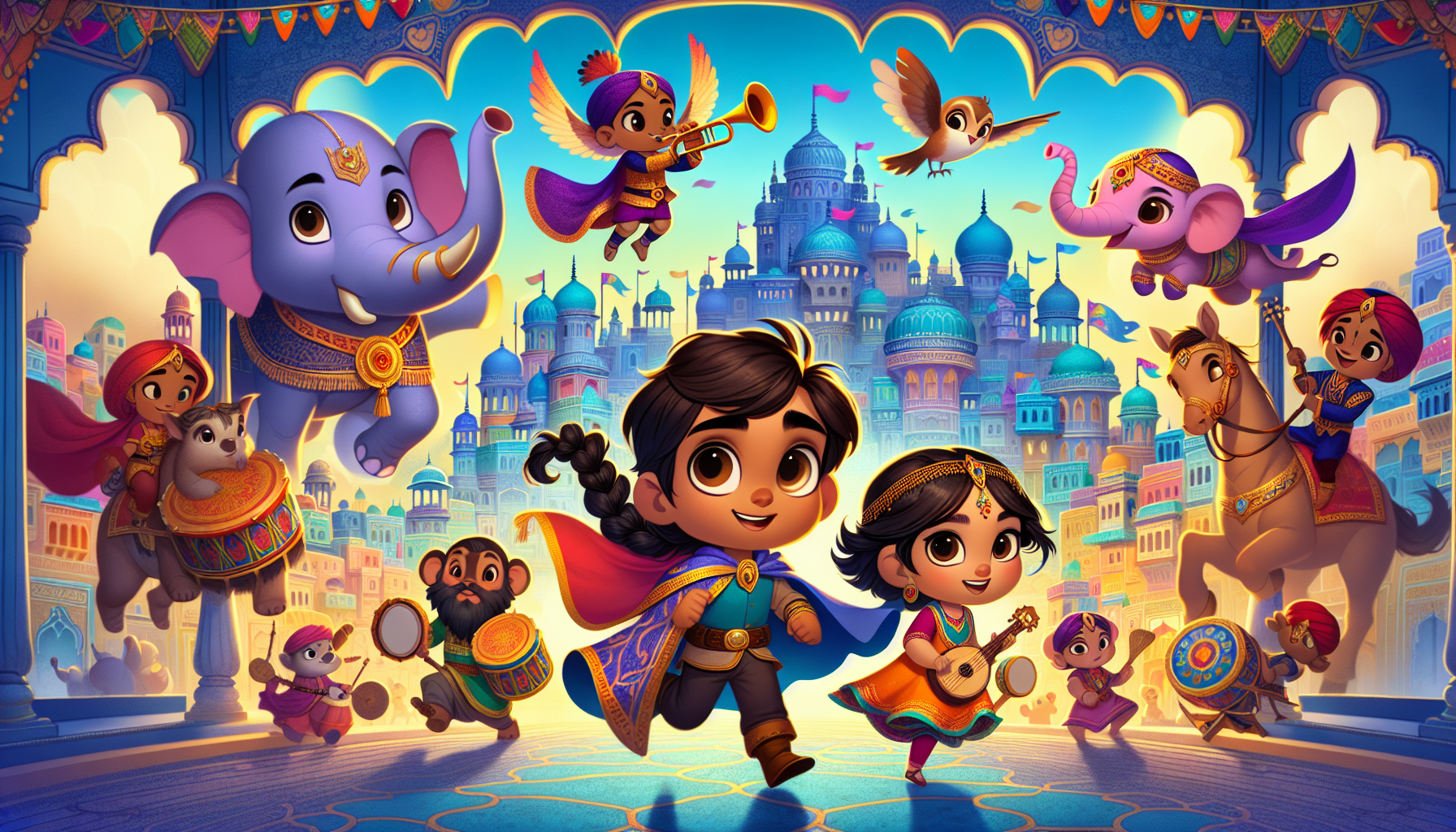 In the bright, sparkling blue city of Jodhpur, where every house was colored in shades of sky and ocean, stood the whimsically charming Twinkle Castle. This castle was not just any castle—it played music every hour, filling the streets with joyful tunes that made everyone want to dance. But one day, the music stopped, and the residents were puzzled.
