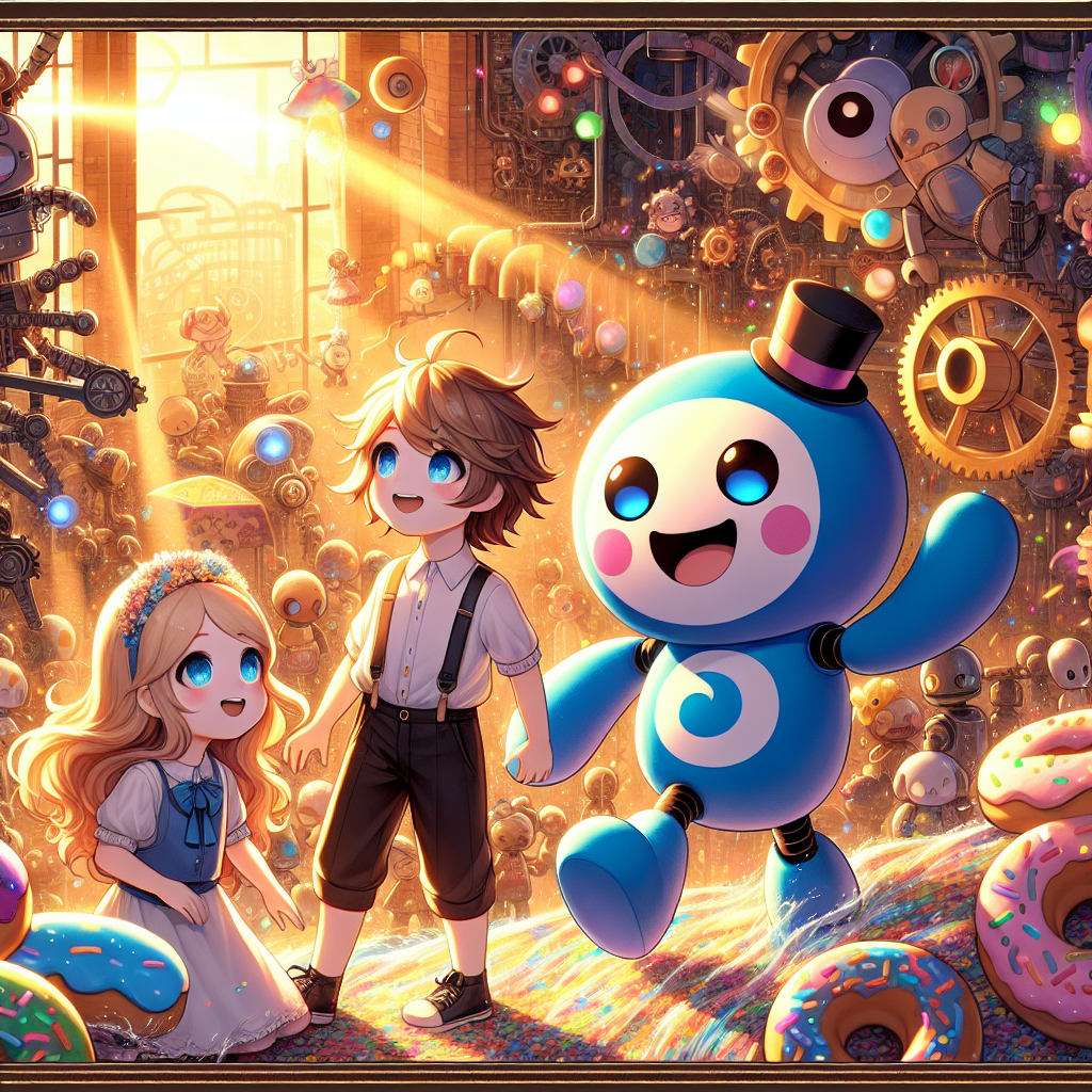 The factory was no longer dim or gloomy. It was a place where joy and laughter thrived. Dizzy, Isabelle, and Gabriel, together with all the robots, celebrated the power of friendship, joy, and a well-told joke. They learned that even when things seem dark, a burst of laughter and a little help from friends can make everything brighter. And as the sun set, casting a golden glow on the robot factory, Dizzy spun one last time, her sprinkles shimmering, ready for another day of laughter and fun.