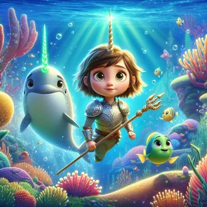 In the Faraway Kingdom, where the sea sparkled like a thousand scattered jewels, lived Noodle the Narwhal Knight. Noodle wasn’t just any narwhal; he was brave, with a shiny green helmet and a horn that glowed whenever treasure was near. His armor, made from enchanted seashells, clinked softly as he swam through the coral reefs, his best friend, a giant Kraken, waving hello from the deep.