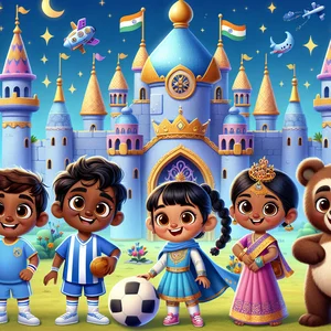 They arrived at the Sparkling Star Garden, a place filled with glowing flowers and shimmering lights. They saw the Star Sprite, a tiny creature with twinkling lights, dancing and twirling with the missing melody. They knew they had to get it back. Divya suggested, "We can put on a performance!" They decided to combine Divya's traditional Indian dance with a soccer game, knowing the Star Sprite's love for dance and fun. Andres used his soccer skills, juggling the ball. Juan, with his jokes, kept everyone entertained. Divya, in her beautiful dance, made them all feel happy. They worked together as a team to distract the Star Sprite. The Star Sprite, drawn to the fun, stopped dancing with the melody. She watched the performance. Then, with a cheerful burst of light, she returned the melody to the towers of Twinkle Castle! The lullabies began to fill the space station again. Everyone smiled as they felt a gentle peace wash over them.