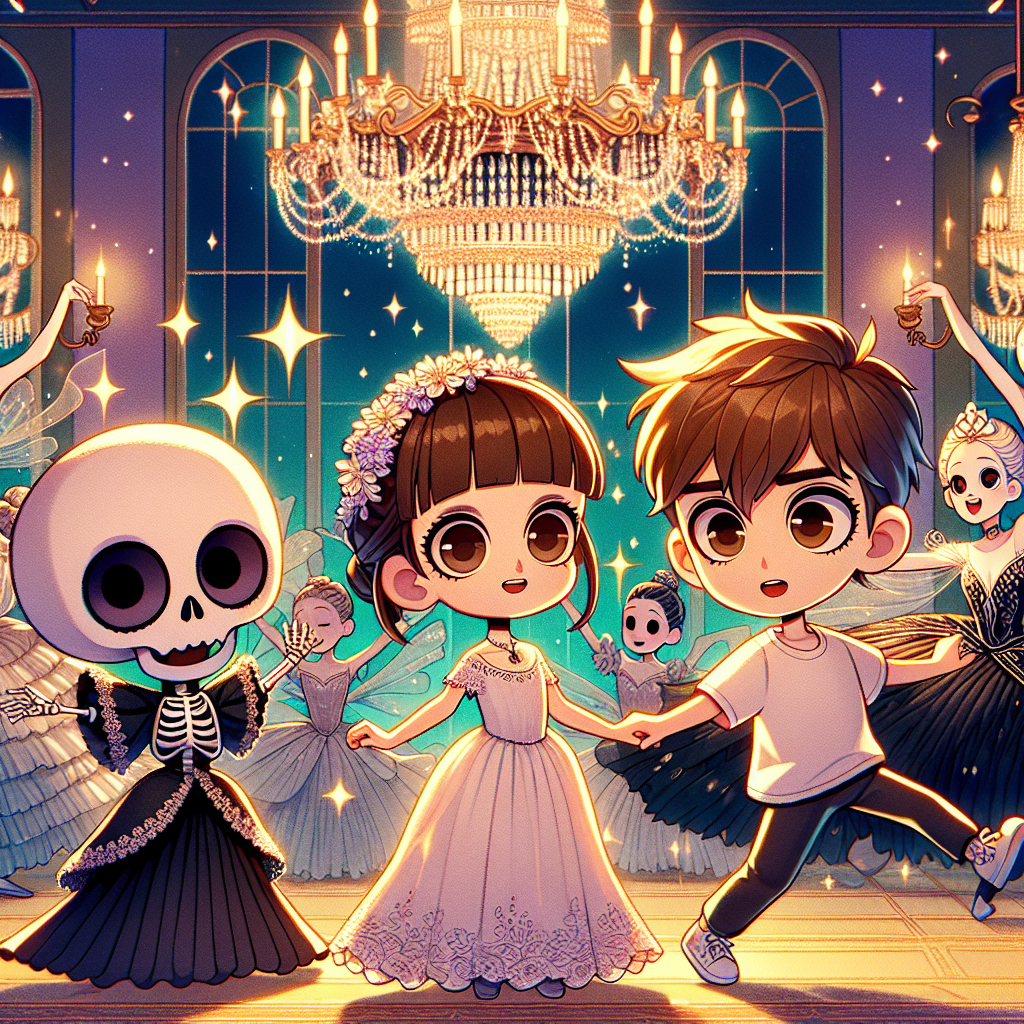 Princess Katie, a beautiful skeleton princess, greeted him with a graceful curtsy. She wore a long, flowing gown of black and white, her bones shimmering softly. Carla, the ballerina, twirled nearby, her movements as light as a feather, while a fierce Kung-Fu Fairy named Yina practiced her swift moves with her nunchucks. Jessie the Wizard Pixie, her eyes sparkling with magic, chatted with Sonya the Dream Fairy, who had a gentle smile. Wanda was there, too, ready to dance. Sam had never seen anything like it!