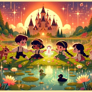 This particular night, the castle was more lively than ever. The reason? Five special guests were visiting: Karan, Rush, Joti, Baby, and Nilli. The children were invited by Twinkling Tutu herself, for she had a very special task in mind—a Symphony of Stars!