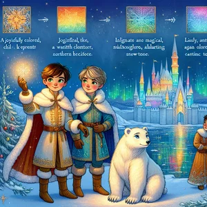 De vuelta en la Guarida del Dragón, Pola y el caballero, trabajaron juntos para terminar el copo de nieve. Pola, con su nueva confianza y el toque de la nube de sueños, hizo que el copo brillara como nunca antes. Combinó los colores de la aurora boreal con la forma especial, agregando un poco de magia de la nieve. El caballero usó su conocimiento de la arquitectura del hielo y su creatividad para diseñar el soporte perfecto. El copo de nieve era ahora más especial que nunca. Pola, aunque estaba un poco nerviosa, también estaba muy emocionada.