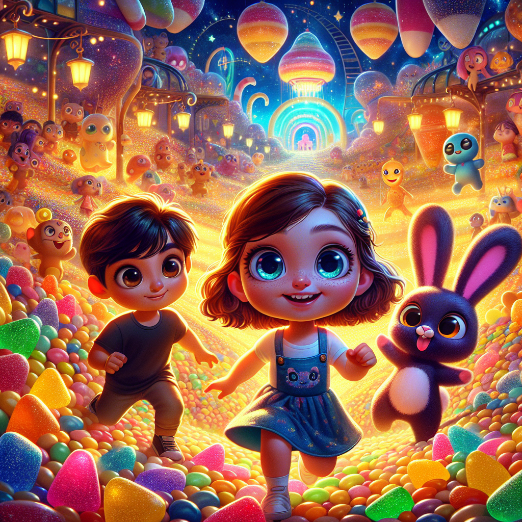 Kiki, la Unicornio Caramelo, de color rosa intenso, practicaba para la gran carrera. Kiki podía saltar puentes de arcoíris y su melena sabía a algodón de azúcar. Sus amigos se acercaron. Kiran, un niño de cinco años con una mente ágil, que amaba los acertijos, observaba a Kiki con interés. Y Ella, una niña de nueve años que amaba bailar y cantar, también estaba ansiosa por los juegos. ¡El evento principal sería la competencia de baile cósmico! "¡Va a ser increíble!" exclamó Tockie, saltando de un lado a otro. "¡Todos los equipos deben mostrar sus mejores movimientos!" Tockie se aseguró de que todos tuvieran un mapa para no perderse. El ambiente era festivo, lleno de música y risas. Los alienígenas compartían golosinas y contaban historias. Ella, con un brillo en los ojos, ensayaba mentalmente las canciones que esperaba cantar después. Kiki estaba lista para ganar la carrera.