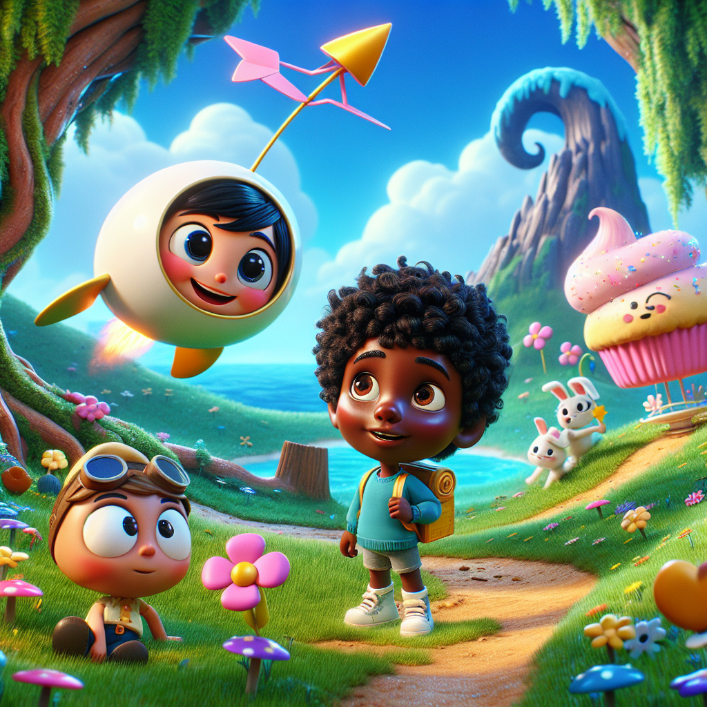 En el encantador Pueblo de las Hadas, donde las flores brillaban con todos los colores del arcoíris y los ríos de limonada fluían alegremente, vivían tres amigos muy especiales. Estaba Rocket Pop, una cápsula espacial azul celeste que se volvía rosa brillante cuando se emocionaba, y que amaba explorar las galaxias llenas de chispas. Luego estaba Clover, una planta parlante de color rosa intenso que crecía flores diferentes en la cabeza cada día, y que podía comunicarse con todas las plantas del mundo. Por último, estaba la Capitana Pompom, una pirata animadora con botas brillantes y un barco hecho de pastelitos, que podía hacer que cualquier cosa brillara con un simple “¡Brillitos, a brillar!”.