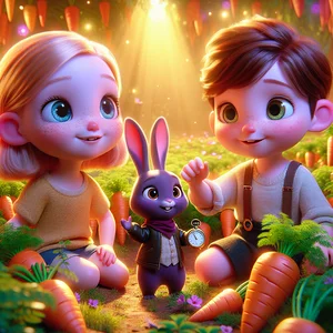 Primero, viajaremos a mi lugar favorito: ¡el campo de zanahorias viajeras en el tiempo! Aquí, las zanahorias te dicen la hora, ¡pero no cualquier hora! Dependiendo del momento del día, tienen diferentes sabores y ¡hasta formas curiosas! Tenemos zanahorias con sabor a pastel de medianoche, y otras que son como estrellas fugaces en tu boca. ¡Pero esperen!