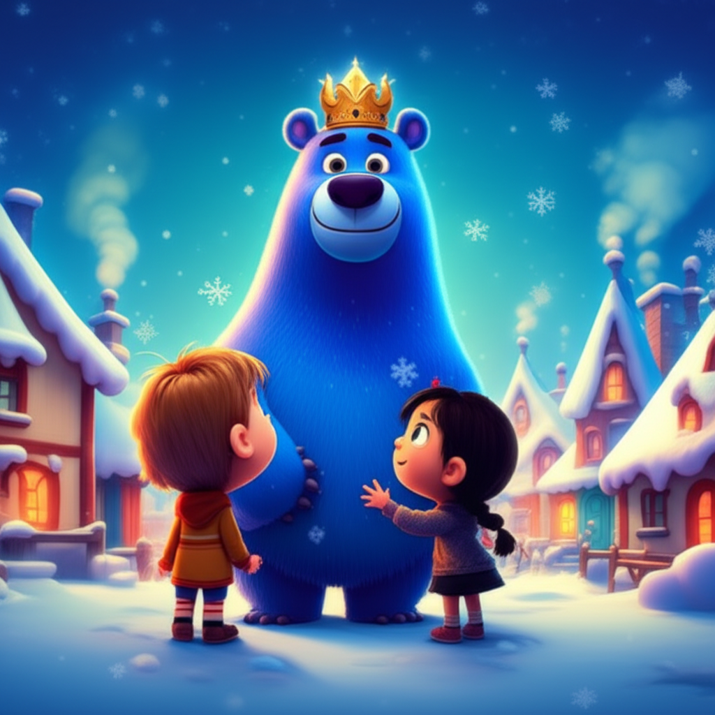 En el encantador Pueblo Nevado, donde las casas parecían dulces de jengibre cubiertos de nieve, vivía un oso azul real llamado Bearon. Bearon, con su pelaje color cielo profundo y una corona brillante, era el rey más querido. No solo por sus abrazos cálidos y sus fiestas de té, sino también porque predecía el clima. Cuando el pelaje de Bearon se volvía esponjoso, ¡sabían que llegaría una gran nevada, perfecta para jugar en la nieve!
