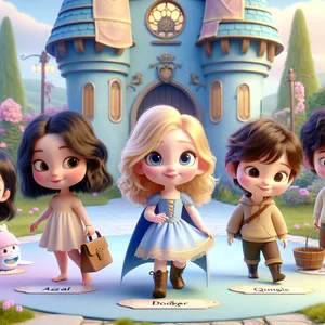 En un jardín secreto, mucho más allá de las nubes y los arcoíris, se alzaba el Castillo Destello. El Castillo Destello era especial, ¡más especial que un pastel de cumpleaños con 100 velas! Tenía 143 habitaciones que cambiaban de lugar cada día, torres que cantaban nanas por la noche y un foso lleno de luz estelar líquida en lugar de agua. En este lugar mágico, Azal, Alice y Qiang, fueron transportados allí por una chispa brillante.