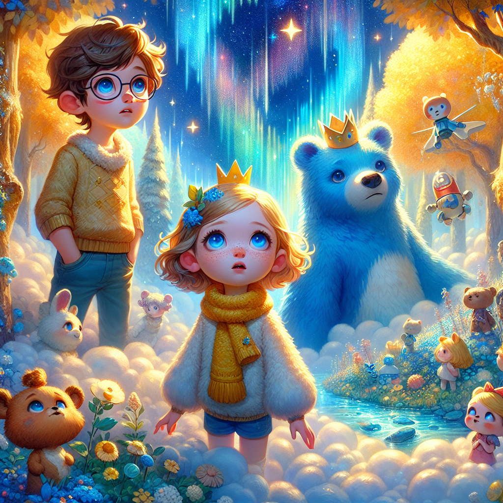 En el corazón del Valle de las Hadas, donde los ríos brillaban como diamantes líquidos y los árboles susurraban secretos al viento, vivía Bearon, el Oso Real. Bearon era un oso azul cielo, con una corona dorada que siempre se mantenía en su lugar, y un pelaje tan suave que podía predecir el clima. Cuando se acercaba una tormenta, su pelaje se esponjaba más que una nube de algodón. Bearon era un gobernante justo, amaba las fiestas de té y los abrazos grupales, ¡tenía el récord mundial del abrazo grupal más largo! Su cetro real, además, era un cucharón de miel, ¡por si se antojaba algo dulce!