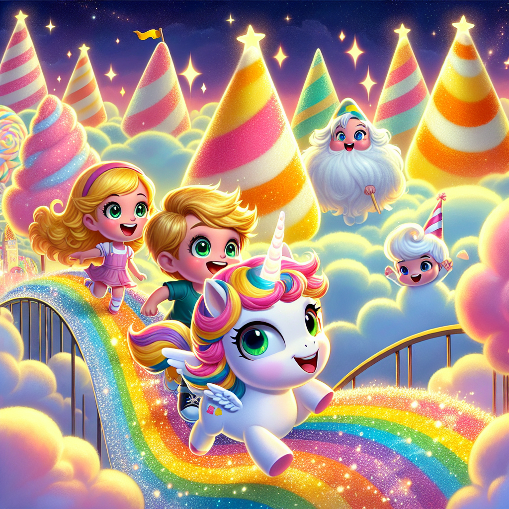 En el Reino de Lejanía, donde las nubes eran de algodón de azúcar y los puentes eran arcosíris, vivía Kiki, la unicornio de maíz de caramelo. Kiki era famosa por su velocidad, su generosidad y su cuerno mágico. Su pelaje era de un rosa profundo, y su melena olía a diferentes sabores de algodón de azúcar. Siempre dejaba un rastro de chispas cuando galopaba, y era conocida por saltar sobre los puentes de arcoíris con facilidad.