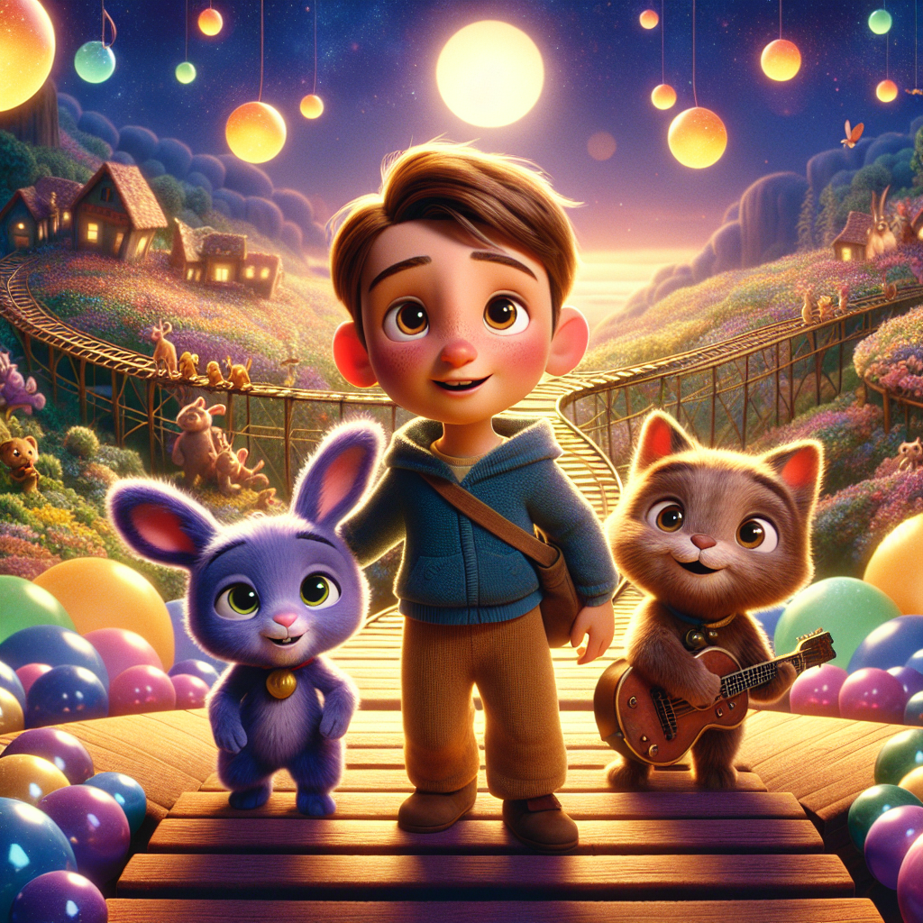 Dans un monde où les nuages ressemblaient à des bonbons et où les rivières pétillaient de limonade, se trouvait l'Île Cachée. Chaque année, l'île accueillait les Grands Jeux Mécaniques, une compétition où l'ingéniosité et le talent étaient rois. Et cette année, une invitation très spéciale arriva à Liam, un jeune garçon de neuf ans aux yeux brillants, passionné par les super-héros et surtout, par les trains. Il aimait construire des ponts, des tunnels, et tout ce qui permettait aux trains de voyager. Il détestait être seul, mais avait beaucoup d'amis.