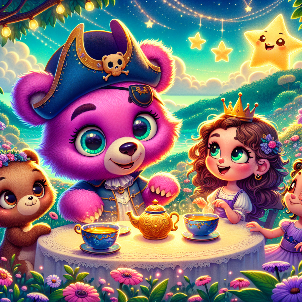 એક સમયે, શાંત મેદાન હતું. ત્યાં સૂર્યપ્રકાશ હંમેશાં ચમકતો હતો, અને સપનાઓ વાસ્તવિકતા જેટલા જ સાચા હતા. આ મેદાનમાં પ્રિન્સ પાઇરેટ બેર રહેતો હતો, જે એક બહાદુર અને દયાળુ રીંછ હતો. તેની પાસે સોનાનો તાજ હતો અને તે પાઇરેટની જેમ આંખે પાટા બાંધતો હતો. તેને હની ટી ખૂબ જ ગમતી હતી, અને તેની પાસે ૩૭ અલગ-અલગ તાજનો સંગ્રહ પણ હતો. પ્રિન્સ પાઇરેટ બેર હંમેશાં તેના રાજ્યનું રક્ષણ કરતો, પરંતુ તે પ્રેમ અને સ્નેહથી કરતો.