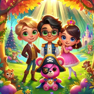 एक समय की बात है, गुब्बारे महल में, जहाँ पहाड़ियाँ आसमान में तैरती थीं, वहाँ एक भालू राजकुमार रहता था, जिसका नाम प्रिंस पायरेट भालू था। वह एक प्यारे हॉट पिंक भालू था, जिसके सिर पर सुनहरा ताज और एक समुद्री डाकू की आँखों पर पट्टी थी। राजकुमार पायरेट भालू अपने राज्य, क्लाउडहेवन से बहुत प्यार करता था। वह हमेशा अपने दोस्तों की मदद करने के लिए तैयार रहता था, और उसका पसंदीदा काम थी honey tea पीना।