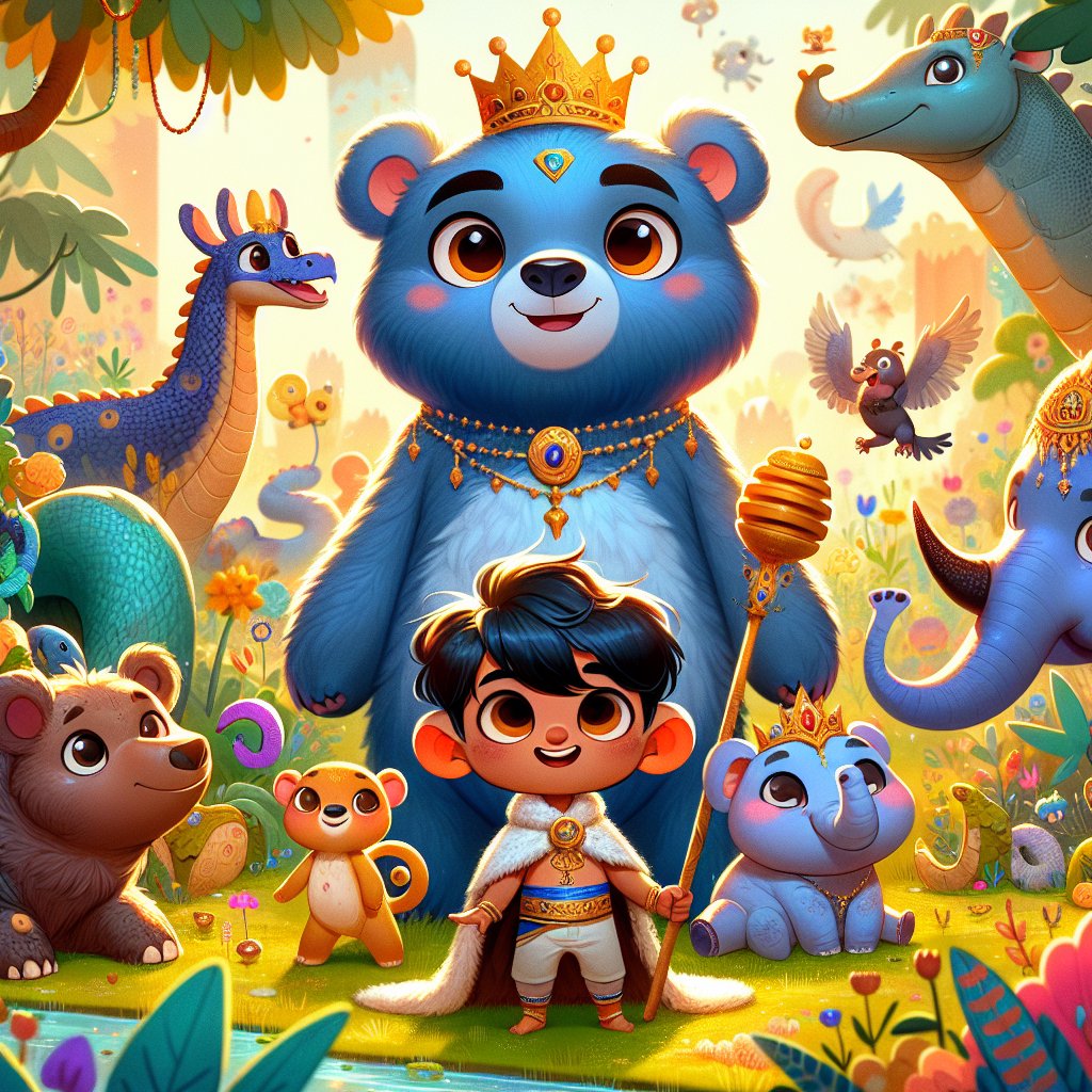 एक दूर देश में, जहाँ हर दिन धूप खिलती थी, एक खुशहाल राज्य था। इस राज्य पर भालू बेरॉन का राज था, जो गहरे नीले रंग के, बहुत ही प्यारे थे। वह हमेशा निष्पक्षता और प्यार से शासन करते थे। बेरॉन राजा थे, लेकिन सबसे ज़्यादा उन्हें चाय पार्टियों और गले लगने का शौक था। उनकी शाही छड़ी शहद से भरी हुई थी, और उनका लंबा गले लगने का विश्व रिकॉर्ड था। बेरॉन के फर कितने फ़्लफ़ी हैं, इस से पता चलता था कि मौसम कैसा होगा।
