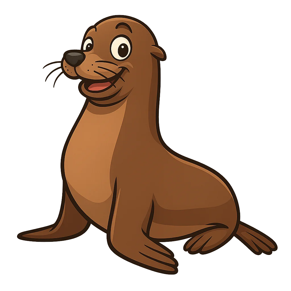 Hello there! My name is a California Sea Lion, and I love to bark! BARK! BARK! I live along the sunny coast of the big Pacific Ocean. My life is full of splashing, playing, and talking with my friends. We are very noisy! Some people think I'm a seal, but I'm a little different. See these little flaps on the sides of my head? Those are my ears! Seals don't have those. Also, I can use my big, strong flippers to 'walk' around when I'm on the rocky shores or sandy beaches. It’s pretty neat to be able to move around on both land and in the water. I get the best of both worlds!