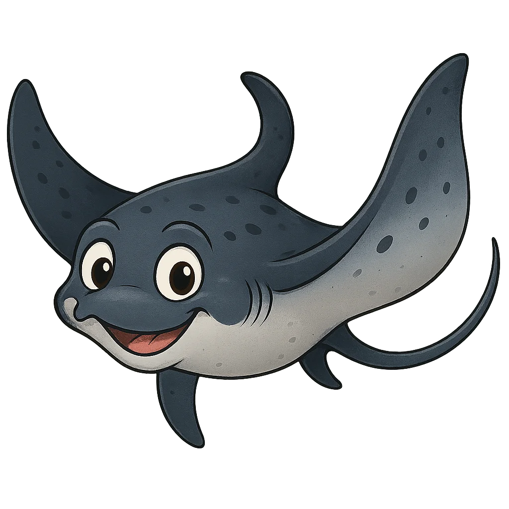 Hello from the big blue! My name is Manta, and I am a Giant Manta Ray, one of the gentlest and largest fish in the entire ocean. You could say I’m a soaring giant. My massive, wing-like fins, called pectoral fins, can stretch wider than a car, helping me glide through the water as if I were flying through the sky. If you were to swim underneath me, you would see a special pattern of spots on my belly. This pattern is completely unique to me, just like a human’s fingerprint is unique to them. It’s how my friends and scientists can tell me apart from other mantas. My species has been known to humans for a very long time. In fact, scientists officially gave us our scientific name in 1792. For a while, some people called us 'devil fish' because of the two horn-shaped fins on my head. But they aren’t scary at all. These fins are called cephalic lobes, and they are very important because they help me guide delicious food right into my mouth.