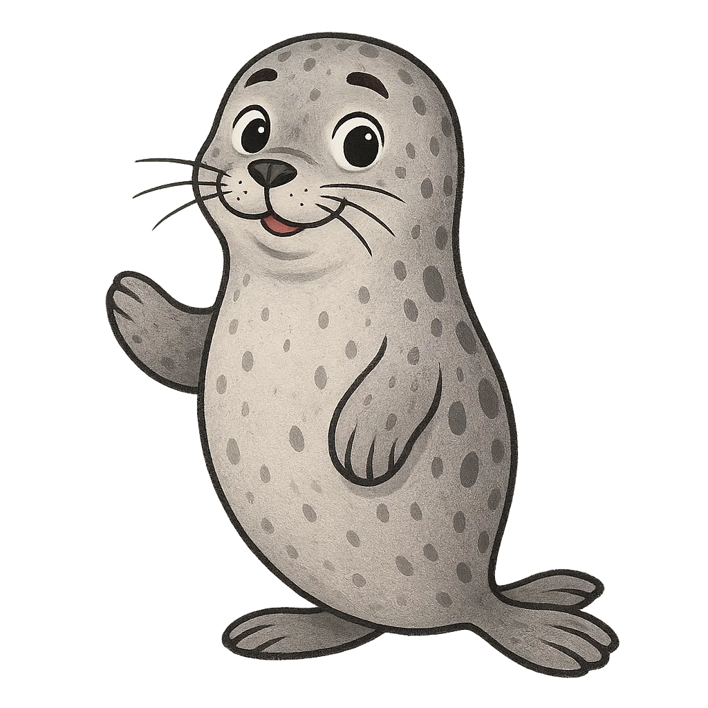 Hello there. I am a harbor seal, and you can probably recognize me by my spotted coat, which can be tan, silver, or even dark brown. I have big, dark eyes that help me see underwater and very sensitive whiskers that tickle in the breeze. I was born on a rocky shore one spring. The air was cool, but I was ready for the world. Just a few hours after I was born, I was already in the water, learning to swim alongside my mother. She had very special milk for me. It was super-rich and full of nutrients, which helped me quickly build a thick layer of blubber under my skin. This blubber is like wearing a warm, waterproof coat all the time, which is very important for staying warm in the cold ocean water where I live. This special coat of blubber was my first defense against the chilly sea and helped me get ready for a lifetime of adventures.