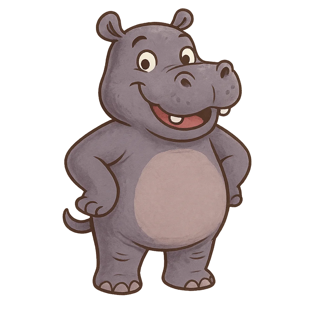 Hello there. My name is Hippopotamus, which is a very old Greek name that means ‘river horse.’ It’s a nice name, but it’s a little funny because my closest living relatives aren’t horses at all. For a long time, people weren't sure who my ancient cousins were. Then, around the 1980s, scientists made a surprising discovery. they found out that my family tree actually connects to whales and dolphins. Isn't that amazing? The common hippopotamus is native to sub-Saharan Africa, with fossil evidence indicating its ancestors originated on the continent. The moment I arrived, my mother was there to nudge me to the surface for my first breath of air. She helped me learn to swim almost immediately, and I spent my first few weeks staying very close to her side, feeling safe and sound in the cool, flowing river that was my whole world.