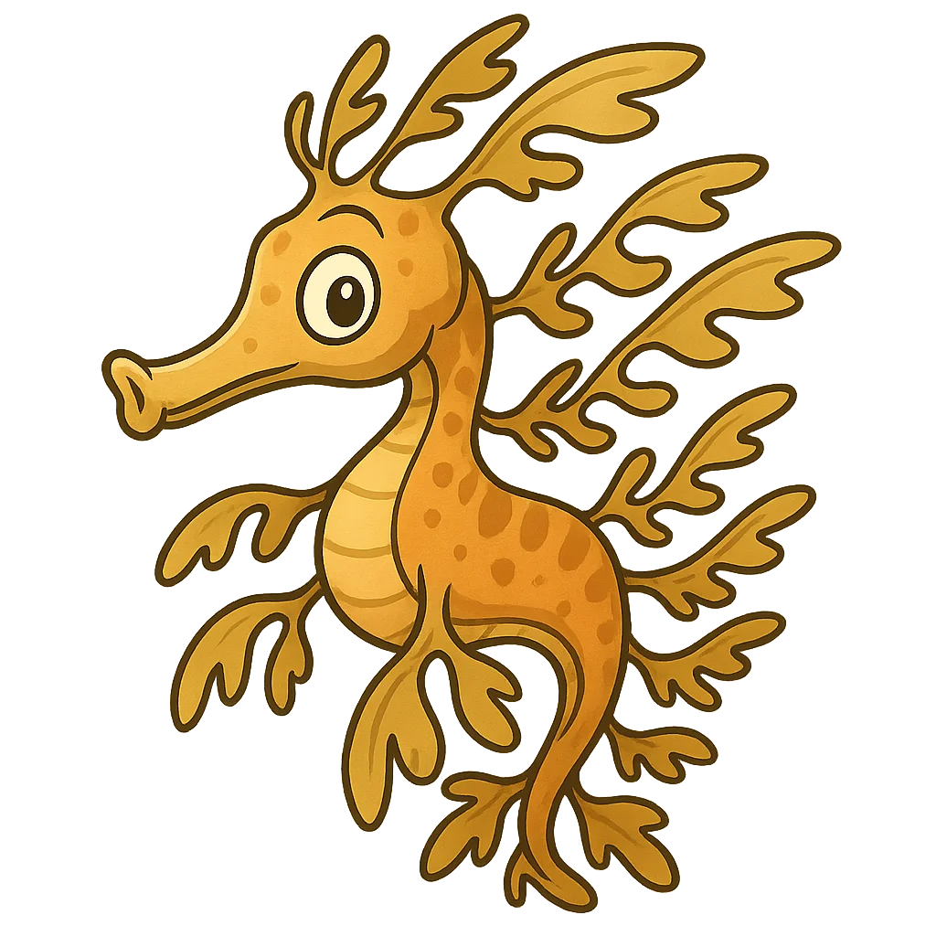 Hello there. My name is the Leafy Seadragon, and if you saw me floating by, you might not even realize I’m an animal at all. You might mistake me for a piece of floating seaweed! I live in the cool, clear waters off the southern coast of Australia, where I make my home among the beautiful, swaying kelp forests. The sunlight filters down through the water, making the kelp dance, and I dance right along with it. My body is covered in amazing leaf-like appendages that look just like the kelp I live in. But these fins are for swimming; they are for camouflage. This incredible disguise helps me blend in perfectly with my surroundings. When hungry fish swim by looking for a meal, they usually pass right over me, thinking I am just another part of the forest. It’s the perfect way to stay safe in a big ocean full of creatures bigger than me.