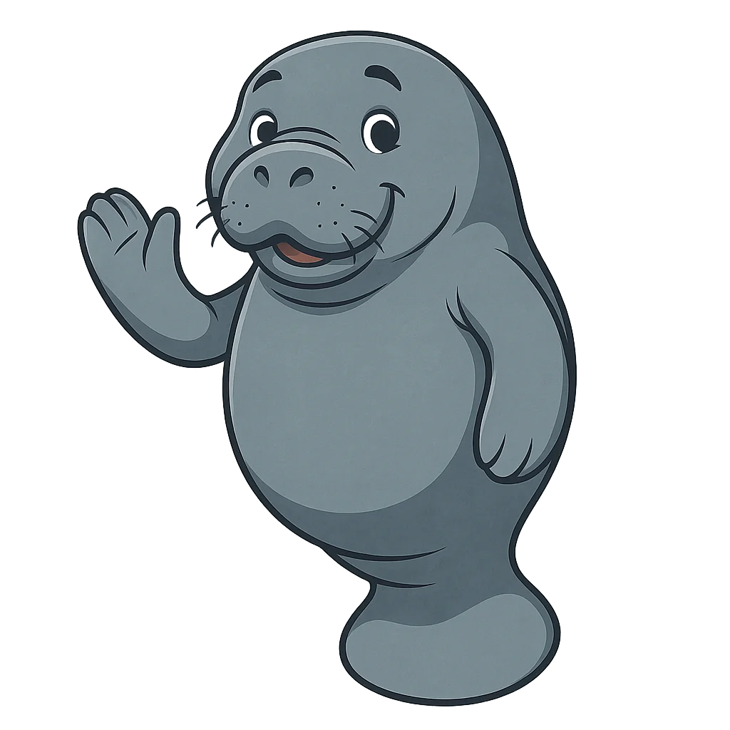 Hello from the water! My name is a bit long—I'm a West Indian Manatee—but most people just call me a sea cow. I think it’s because I’m a big, gentle animal who loves to eat plants! My home is in the warm, shallow coastal waters of the Americas, where the sun can reach the bottom and grow the tasty seagrass I love so much. I still remember the day I was born. My mother was right there beside me, and she gently pushed me to the surface so I could take my very first breath of air. For the next two years, I stuck close to her side like a shadow. She was the best teacher, showing me all the secret spots to find the greenest seagrass and the warmest pockets of water to rest in when the ocean felt a little chilly. She taught me everything I needed to know to survive on my own.