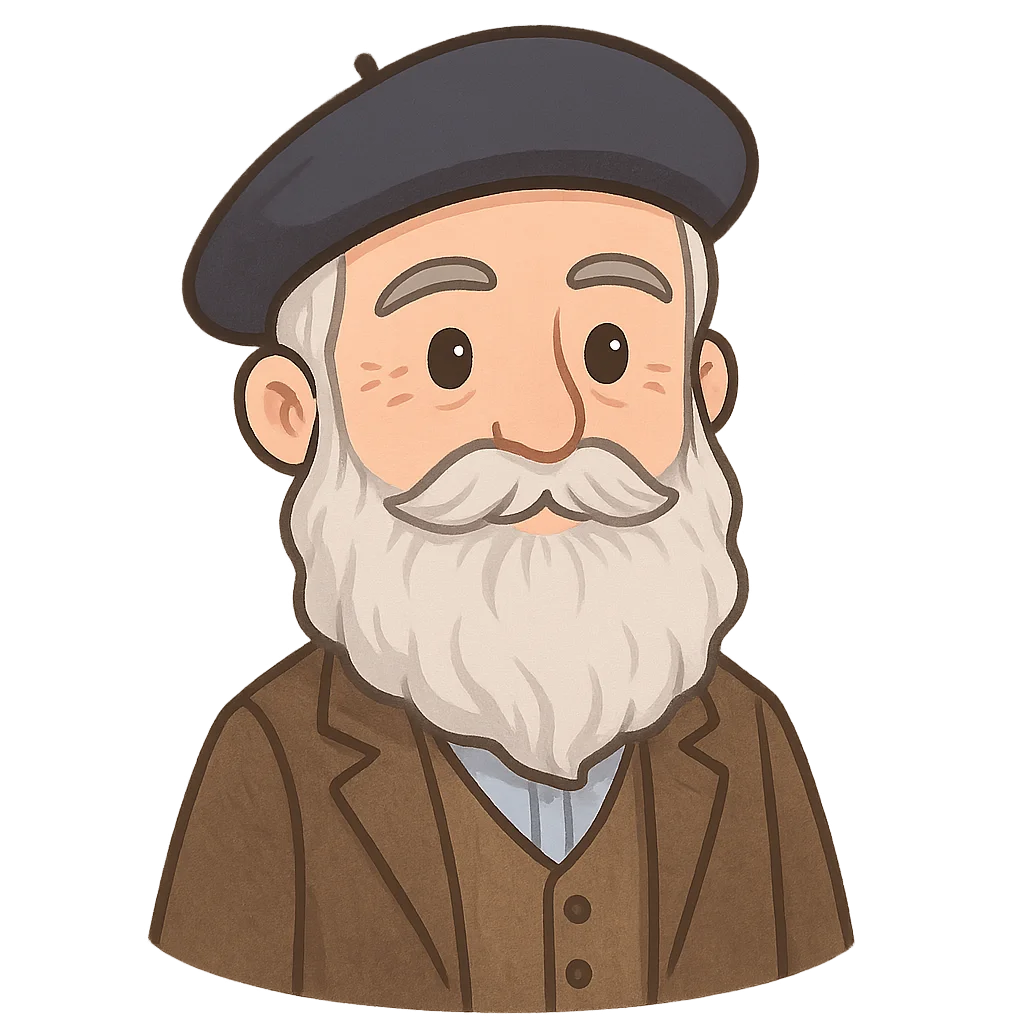 Hello! My name is Oscar-Claude Monet, but you can call me Claude. I was born in Paris, France, on November 14th, 1840. When I was a little boy, around 1845, my family moved to a town by the sea called Le Havre. I loved everything about the outdoors—the water, the sky, and the changing weather. I must admit, I enjoyed being outside much more than I enjoyed being in a classroom. My first success as an artist didn't happen with a paintbrush, but with a pencil. I became known for drawing funny pictures, which are called caricatures, of my teachers and the people in my town. It was my first step into the world of art, and it was just the beginning.