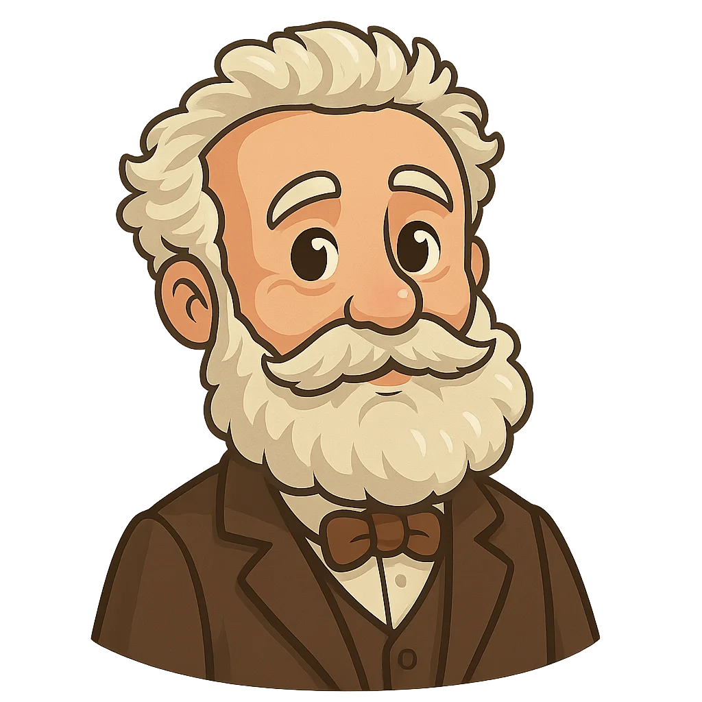 In 1847, I moved to Paris to follow my father’s wishes and study law. The city was bustling and full of energy, but I found the legal books to be quite dull compared to the stories I wanted to tell. While I was supposed to be studying, I spent much of my time in libraries, reading everything I could about science, geography, and all the amazing new inventions of the time. I also began writing plays, letting my imagination run free. My life took an exciting turn when I met a publisher named Pierre-Jules Hetzel. He saw the spark in my eyes when I talked about science and adventure. He encouraged me to combine my two greatest passions: my love of scientific facts and my talent for storytelling. This was the moment my journey as an author truly began.