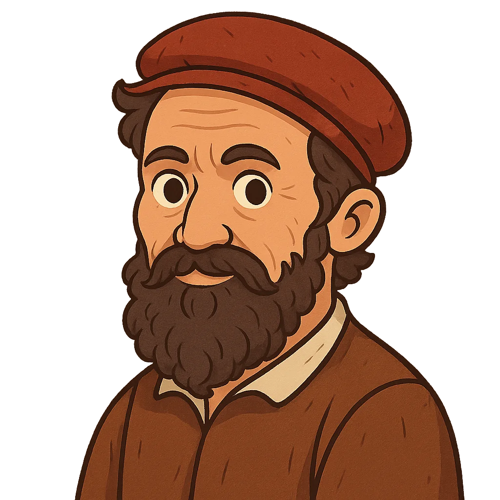 Hello! My name is Michelangelo Buonarroti, and I was an artist. I was born on March 6th, 1475, in a small town in Italy. Even as a little boy, I didn’t want to play games like the other children. I just wanted to draw! My father wanted me to study grammar, but my heart belonged to art. When I was 13 years old, in 1488, I finally got my wish and became an apprentice to a famous painter named Domenico Ghirlandaio in the great city of Florence.