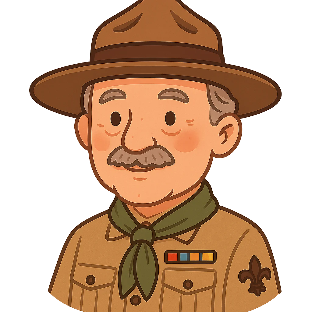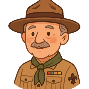 Hello! My name is Robert Baden-Powell, but many people called me B-P. My story begins in London, England, where I was born on February 22nd, 1857. I grew up in a big family with many brothers, and we loved nothing more than exploring the outdoors. We’d go on adventures in the woods near our school, pretending to be explorers or hunters. We learned how to track animals, build shelters, and cook over a campfire without anyone noticing we were there. These early adventures taught me to be observant and resourceful, skills that would become very important later in my life.