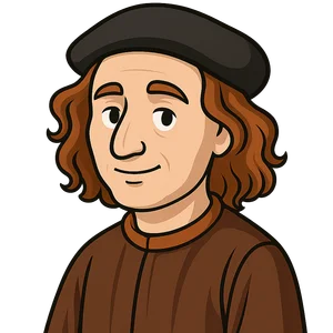 Hello, my name is Alessandro Filipepi, but everyone knows me by my nickname, Sandro Botticelli. It means ‘little barrel,’ a funny name I was given as a boy. I was born in the beautiful city of Florence, Italy, around the year 1445. Growing up in Florence was amazing. The city was buzzing with artists creating wonderful things and thinkers sharing new ideas. It was a very exciting place to be. At first, I was sent to be a goldsmith's apprentice, where I learned to work with shiny metals. But I soon realized that my true passion was painting. I loved mixing colors and creating pictures more than anything else. So, around the year 1460, I left the goldsmith's shop to study with a famous painter named Fra Filippo Lippi. He taught me so much about how to bring stories to life on a canvas.