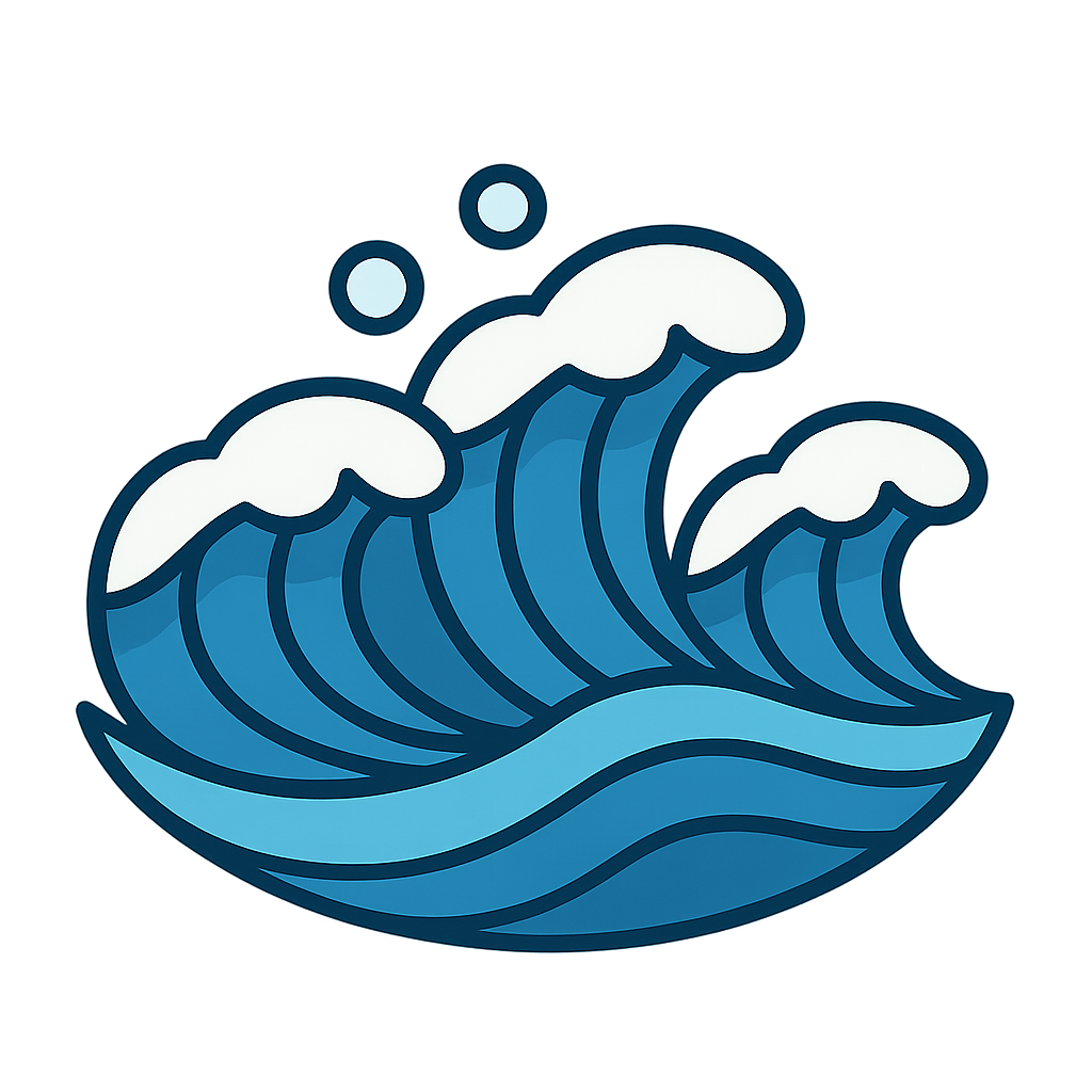 Whoosh. I rush toward the shore, a roaring wall of white foam and turquoise water. Crash. I tumble onto the warm sand, my energy fizzing into tiny bubbles that tickle your toes. As I pull back, I drag a little bit of the land with me, a playful tug that makes you stumble. From the middle of the great, wide ocean, I can see the sun rise like a golden coin and set like a melting orange. I am the ocean’s breath, inhaling and exhaling in a slow, steady rhythm that has been going on for millions of years. I am the planet’s heartbeat, a pulse of energy that travels for thousands of miles. I carry stories from faraway storms and secrets from the deep. I’ve seen ancient ships and lonely islands, and I’ve whispered messages to every shore I’ve ever met. People have watched me, listened to me, and wondered about me for as long as they have existed. Do you know who I am. I am an Ocean Wave.