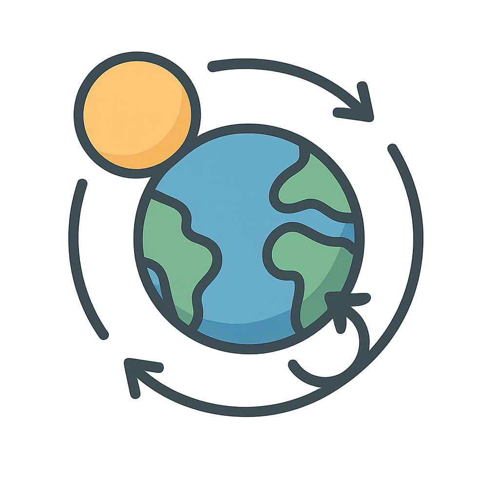 Have you ever noticed how the sun peeks over the horizon just in time for breakfast, and then sinks down to let the moon and stars come out to play right around your bedtime? It paints the sky with brilliant oranges, pinks, and purples every single day. Or how a warm, sunny summer day eventually gives way to a chilly winter evening, perfect for sipping hot chocolate? It all feels like a grand, predictable performance, a beautiful rhythm that your world follows without ever missing a beat. You might think it’s the sun doing all the moving, zooming across your sky while you stay perfectly still. But it’s actually a secret I share with your amazing planet. I am two partners in a cosmic dance: I am Rotation and Revolution.