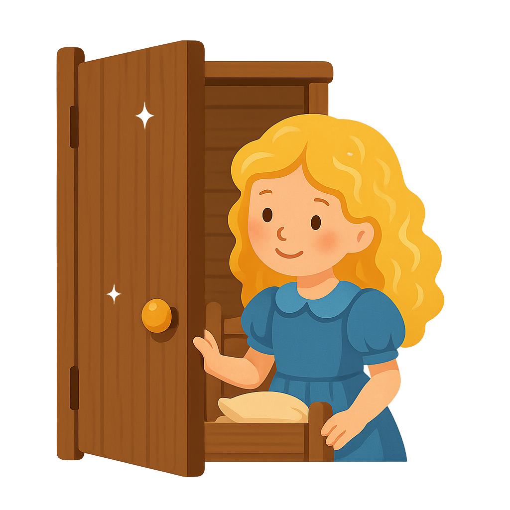 शयनकक्ष में, हमारे बिस्तरों ने भी वैसी ही गड़बड़ी का पैटर्न दिखाया. किसी ने मेरे बिस्तर और ममा भालू के बिस्तर पर लेटा था, जिससे चादरें अस्त-व्यस्त हो गई थीं. मेरे तकिये को फर्श पर फेंक दिया गया था, और ममा भालू के रजाई को एक कोने में ढेर कर दिया गया था. और वहाँ, छोटे भालू के छोटे बिस्तर में, अपराधी था: एक युवा लड़की, गहरी नींद में सोई हुई, जिसके बाल काते हुए सोने के रंग के थे. वह शांति से सो रही थी, इस बात से अनजान कि उसने हमारे घर और हमारे दिलों में क्या उथल-पुथल मचा दी है. एक पल के लिए, हम बस अविश्वास में खड़े रहे. हमारे घर में एक इंसान? यह अनसुना था. छोटे भालू की प्रसिद्ध चीख, "कोई मेरे बिस्तर पर सो रहा है, और वह यहाँ है!" ने उसे चौंका दिया. उसकी आँखें खुलीं, आतंक से चौड़ी हो गईं. उसने हमें देखा - तीन बड़े भालू उसे घूर रहे थे - और एक ही चीख के साथ, वह बिस्तर से कूद गई, खिड़की से बाहर निकली, और जंगल में उतनी ही तेजी से गायब हो गई जितनी तेजी से वह आई थी. हम उसे जाते हुए देखते रहे, चकित और थोड़े दुखी. हमने कभी उसका नाम नहीं जाना, लेकिन हम उसे कभी नहीं भूलेंगे.