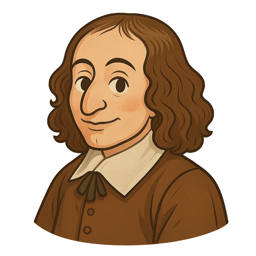 私の人生は、身の回りの世界の仕組みだけでなく、信仰や人生の意味といったより大きな問題についての問いに満ちていました。私は39歳まで生き、1662年にこの世を去りました。私の人生は短かったかもしれませんが、私の考えが後世に生き続けていることを誇りに思います。私の研究は、電卓やコンピューターの創造、天気予報の科学の発展に貢献しました。私の名誉を称え、「パスカル」と名付けられたコンピュータープログラミング言語さえあります。私の物語が、好奇心は力強い贈り物であり、世界を変えるようなアイデアを思いつくのに若すぎるということはないと、皆さんに示せたら嬉しいです。