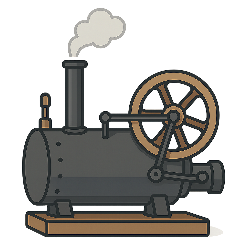 Моё первое воплощение было довольно неуклюжим. В 1712 году изобретатель по имени Томас Ньюкомен построил меня, чтобы я откачивал воду из тех самых затопленных шахт. Я был огромным, громыхающим гигантом из железа и дерева, и меня называли «атмосферным двигателем». Мой принцип работы был прост, но не слишком эффективен. Сначала пар из котла поступал в большой цилиндр, выталкивая поршень вверх. Затем в цилиндр впрыскивалась струя холодной воды. Пар мгновенно конденсировался, превращаясь обратно в воду и создавая внутри вакуум. Давление наружного воздуха, атмосферное давление, с силой давило на поршень, толкая его вниз. Этот поршень был соединён с огромным коромыслом, которое, в свою очередь, приводило в движение насос в шахте. Я работал. Я спасал шахты от затопления, но у меня был огромный недостаток: я был невероятно «прожорлив». Процесс постоянного нагрева и охлаждения массивного железного цилиндра требовал колоссального количества угля. Я тратил больше энергии на разогрев самого себя, чем на полезную работу. Десятилетиями я трудился в таком виде, пока однажды, в 1765 году, на меня не взглянул молодой и гениальный шотландский инженер по имени Джеймс Уатт. Ему поручили починить одну из моих моделей, и он сразу заметил мою главную проблему. «Зачем охлаждать весь цилиндр каждый раз? — размышлял он. — Это же такая пустая трата тепла!». И в этот момент его осенила идея, которая изменила всё. Он придумал добавить отдельный конденсатор — небольшую камеру, соединённую с цилиндром, где пар мог бы охлаждаться, не остужая при этом сам цилиндр. Это было революционное решение. Мой главный цилиндр теперь мог оставаться горячим постоянно, что сделало меня в три раза эффективнее! Я стал сильнее, быстрее и экономичнее благодаря гению Джеймса Уатта.