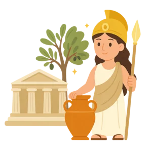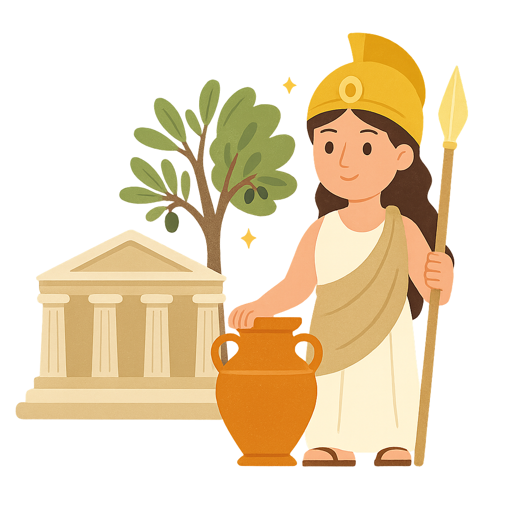 Ánh mắt của ta thường trôi dạt từ những đỉnh núi mờ sương của Olympus xuống thế giới của người phàm, nhưng có một thành phố luôn thu hút sự chú ý của ta. Nó lấp lánh dưới ánh mặt trời Aegean, một viên ngọc bằng đá trắng đặt trên nền biển xanh, người dân nơi đây tràn đầy sự thông minh và tham vọng. Ta là Athena, và ta biết rằng thành phố này xứng đáng có một người bảo hộ coi trọng trí tuệ và nghề thủ công nhiều như chính những công dân của nó. Một ngày nọ, người chú quyền năng của ta, Poseidon, chúa tể của biển cả, đứng bên cạnh ta và tuyên bố ý định của mình muốn chiếm hữu thành phố, dẫn đến câu chuyện thần thoại nổi tiếng mà chúng ta bây giờ gọi là Athena và Cuộc Thi vì Athens. Các vị thần khác đã ra lệnh rằng chúng ta phải thi đấu; người nào trao cho thành phố món quà hữu ích nhất sẽ trở thành vị thần bảo trợ của nó. Sân khấu được dựng lên trên tảng đá cao của thành Acropolis, với nhà vua Cecrops và tất cả mọi người tụ tập để chứng kiến thử thách thiêng liêng của chúng ta. Ta cảm thấy một sự tự tin thầm lặng, vì ta hiểu rằng sức mạnh thực sự không phải lúc nào cũng được tìm thấy trong những con sóng dữ dội hay mặt đất rung chuyển, mà là trong những món quà bền bỉ, kiên nhẫn giúp một nền văn minh phát triển và thịnh vượng qua nhiều thế hệ.