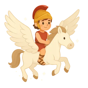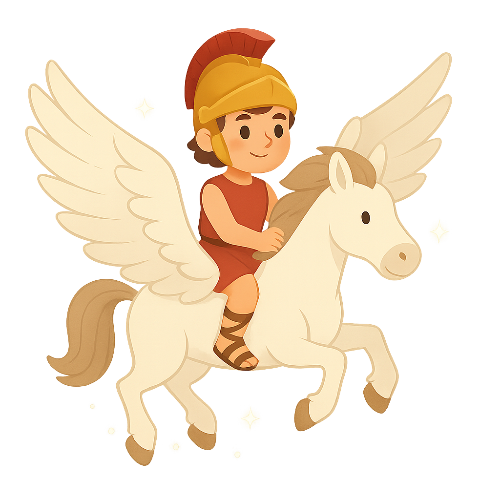 我的名字是柏勒洛丰。很久以前,在阳光普照的科林斯城,我的心中只有一个高飞的梦想:骑上那匹长着翅膀的神马,珀伽索斯。我常常凝望着白云飘过湛蓝的天空,想象着自己就在那云端之上,驾驭着那匹雄伟的、珍珠般洁白的生物滑翔。据说它是海神波塞冬的儿子。人人都说它桀骜不驯,是空中狂野的精灵,但我内心深处却有种灼热的信念,我知道,我们注定要一起成就伟业。这就是我如何触及天空的故事,一个关于柏勒洛丰和珀伽索斯的故事。