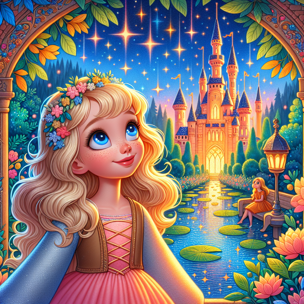 Ver weg, in een koninkrijk waar dromen werkelijkheid werden, stond Twinkelkasteel. Het was een kasteel van dodger blue, met torens die 's nachts slaapliedjes zongen en een gracht gevuld met vloeibaar sterrenlicht. Binnenin veranderden de kamers dagelijks van plaats, en een familie van wolkendrakken woonde vredig boven de torens.