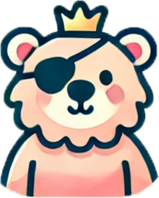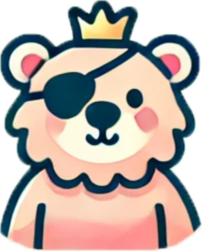 Um urso corajoso com uma coroa dourada e um tapa-olho de pirata. Ele protege seu reino com bondade e abraços.