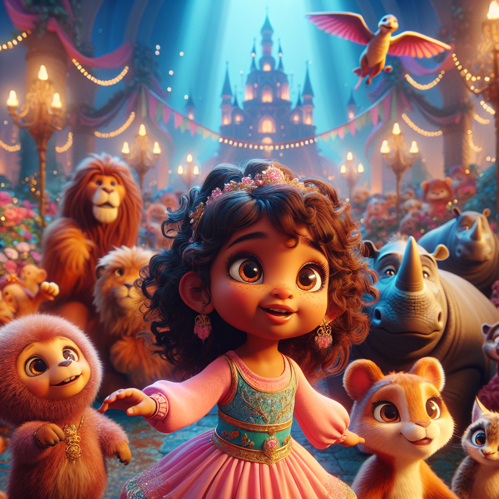 Certa manhã, em uma casinha em Ilha Escondida, uma menina chamada Camila acordou com um sorriso. Camila adorava dançar, cantar e inventar histórias. Ela gostava tanto de música que dançava sempre que ouvia uma melodia. De repente, um brilho cor-de-rosa cintilou na sua janela. Era uma carta! Camila correu para pegar a carta. Ela era de Castelo Brilho. "Caríssima Camila", dizia a carta, com letras que pareciam dançar. "Convidamos você para uma festa muito especial! Venha dançar e cantar!" Camila pulou de alegria. Ela adorava cantar e dançar. A carta dizia também que ela podia trazer dois amigos.